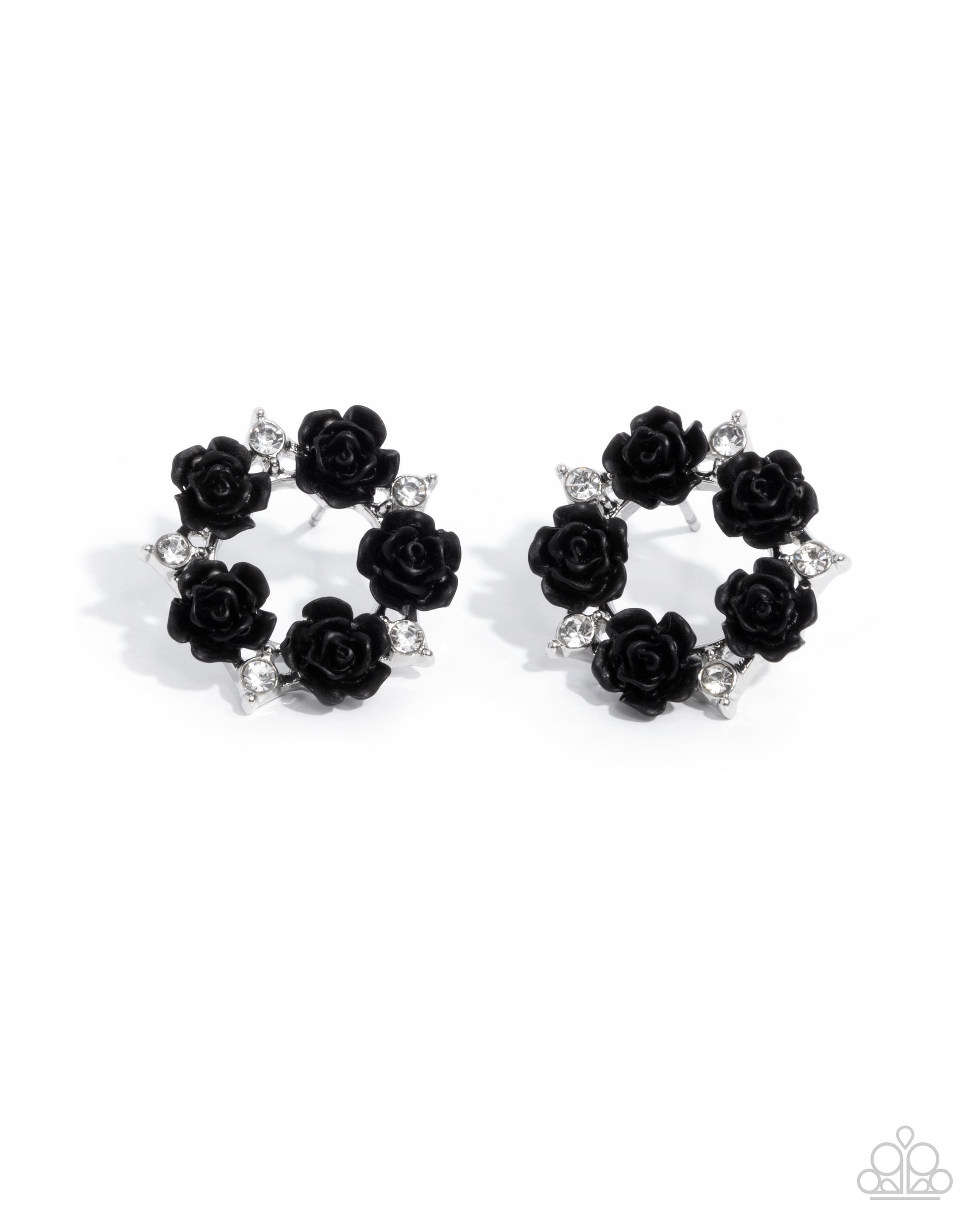 Grace Personified - Black Rosette Silver Post Earrings - Paparazzi Accessories