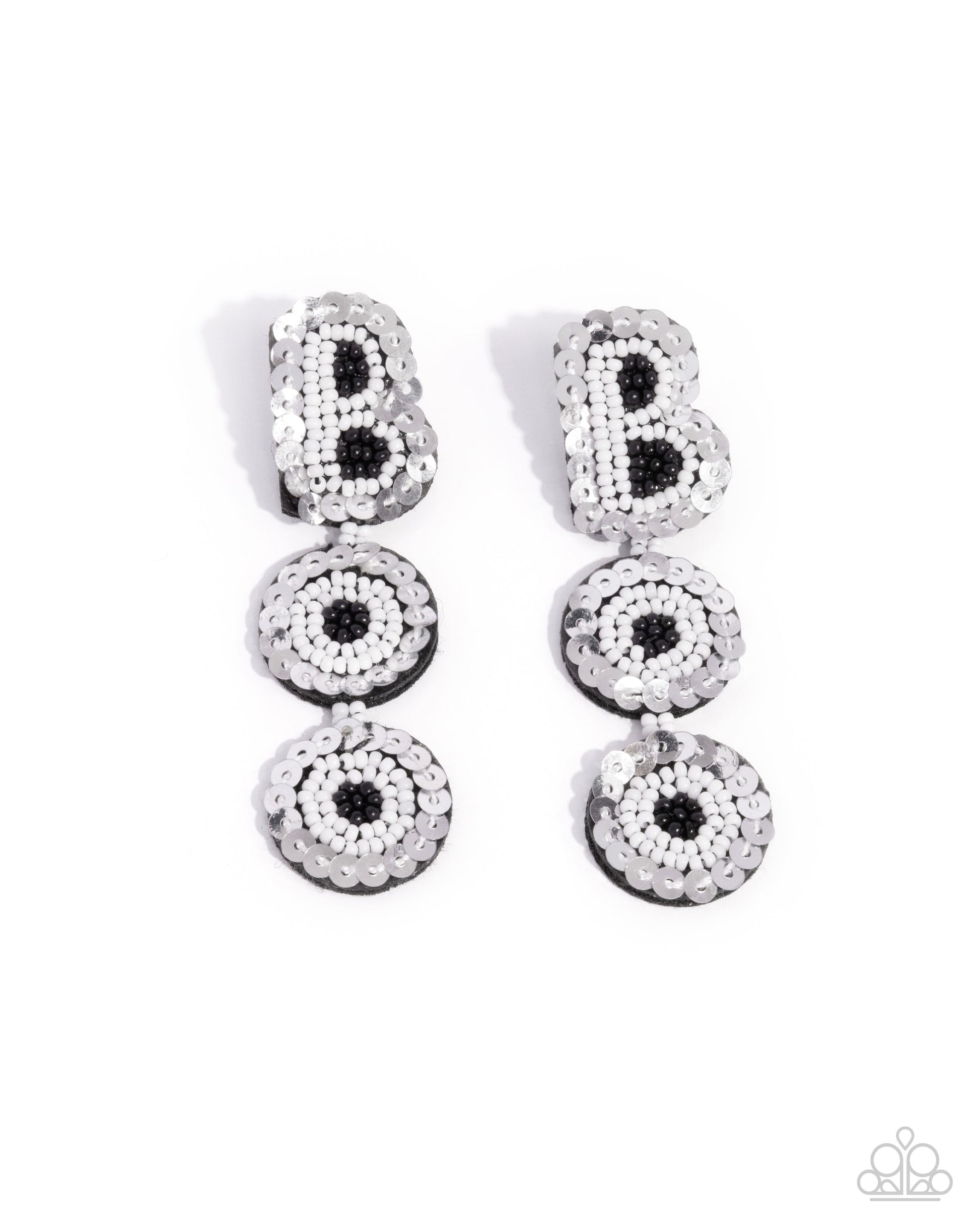 Halloween Bash - White Seed Bead "BOO" Post Earrings - Paparazzi Accessories