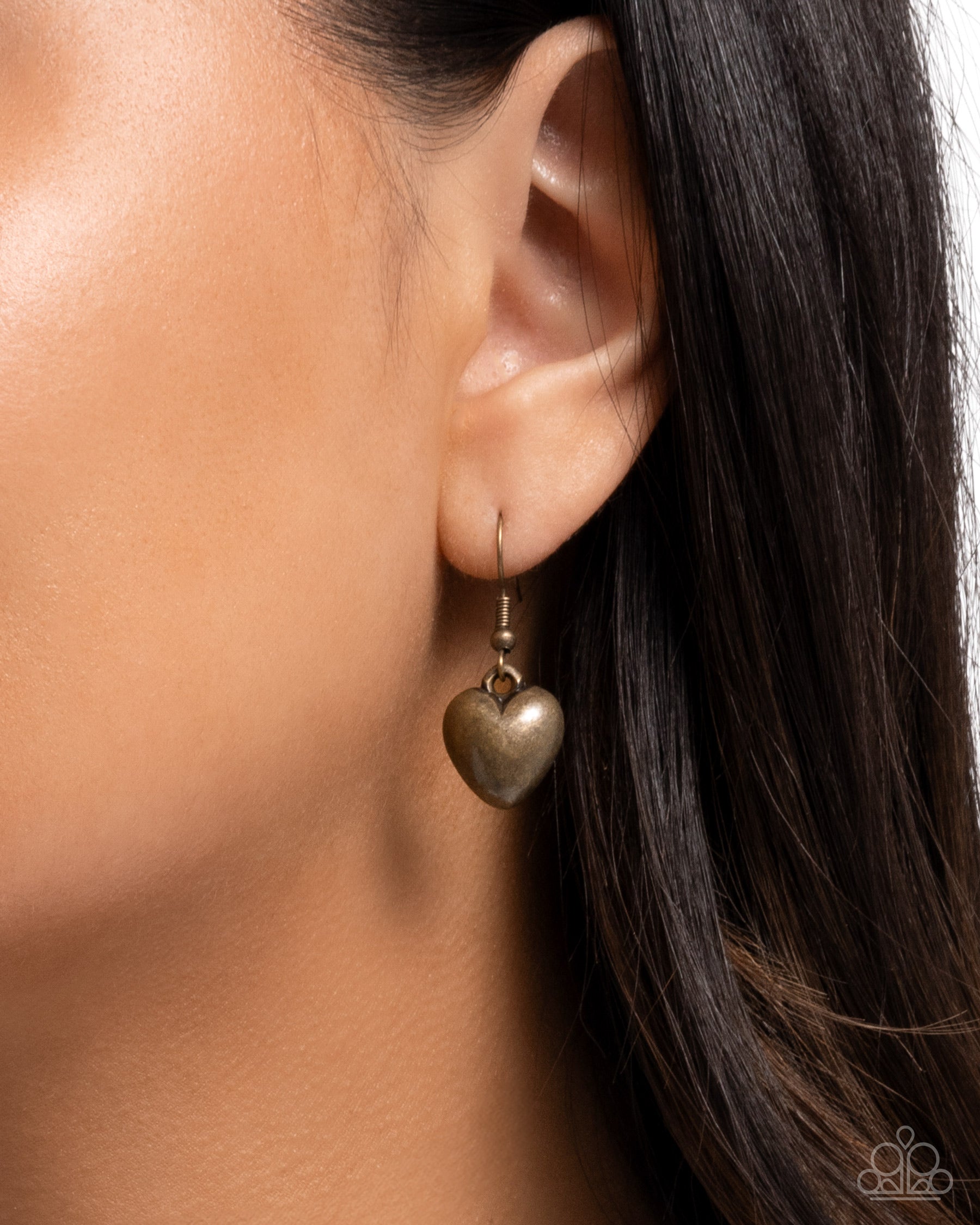 Heart Haul - Brass Heart Charms Necklace - Paparazzi Accessories