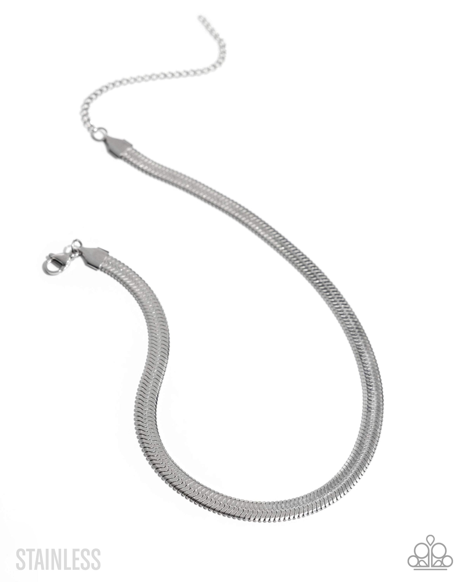 Herringbone Haute - Silver - Stainless Steel Herringbone Chain Necklace - June 2025 Life of the Party Exclusive - Paparazzi Accessories