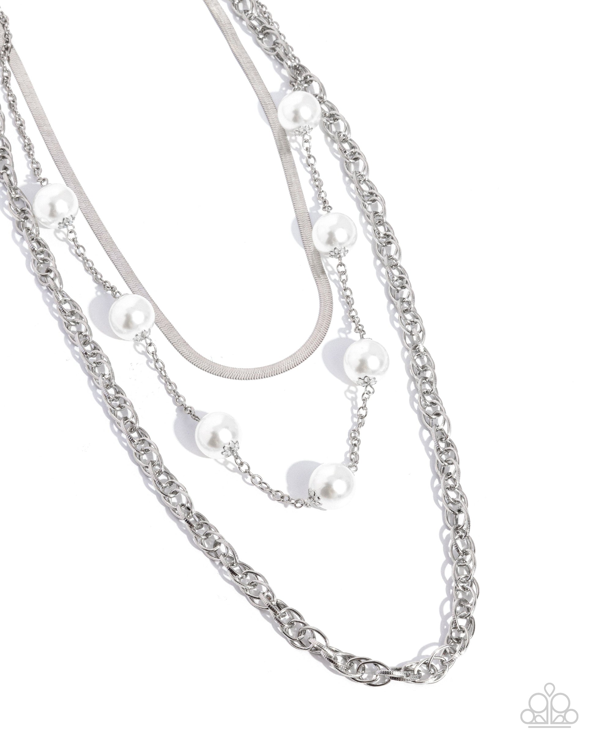 High-Class Haute - White Pearl Layered Silver Necklace - Paparazzi Accessories