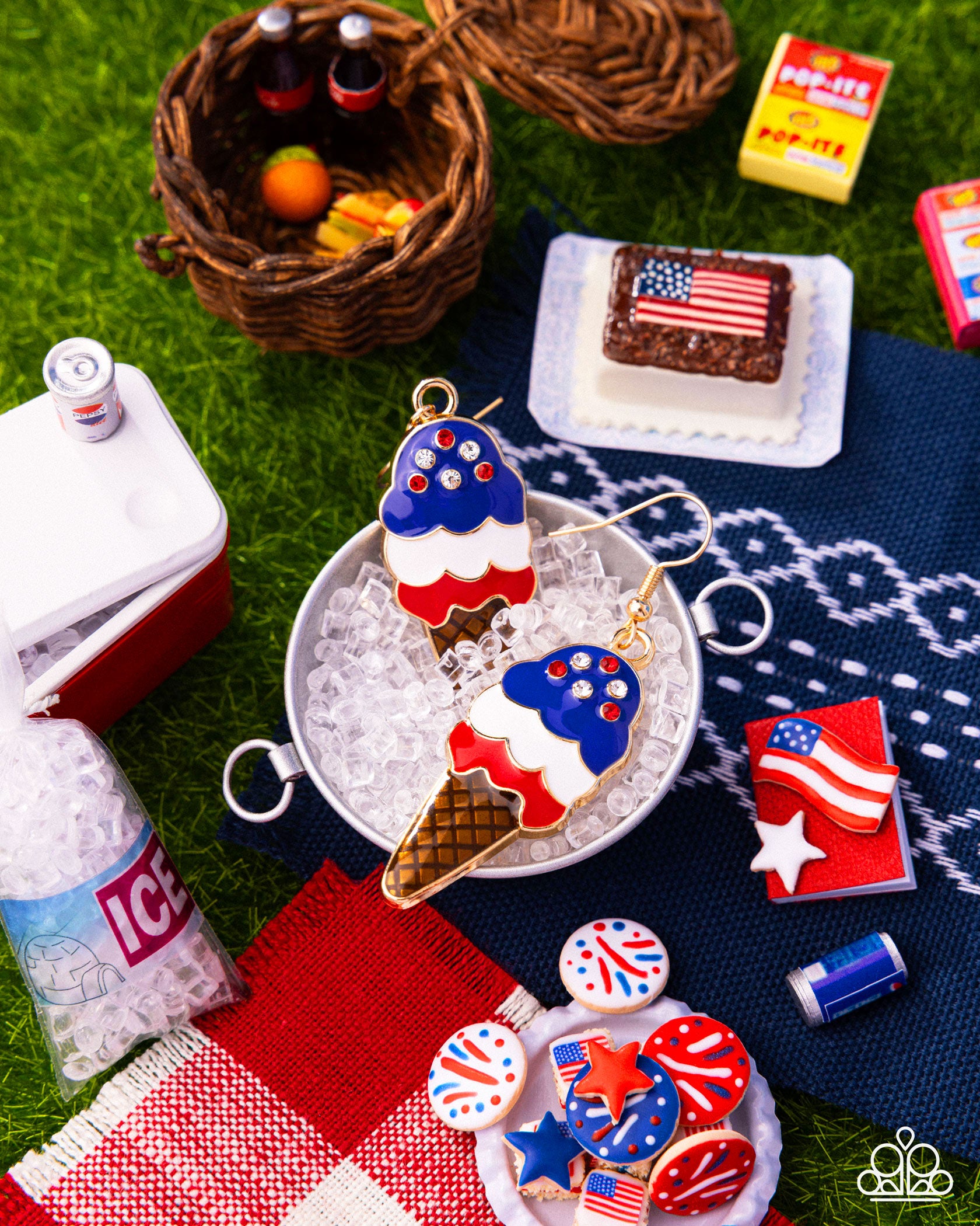 Imaginative Ice Cream - Multi - Red, White, Blue, & Brown Enamel Gold Fishhook Earrings - Paparazzi Accessories