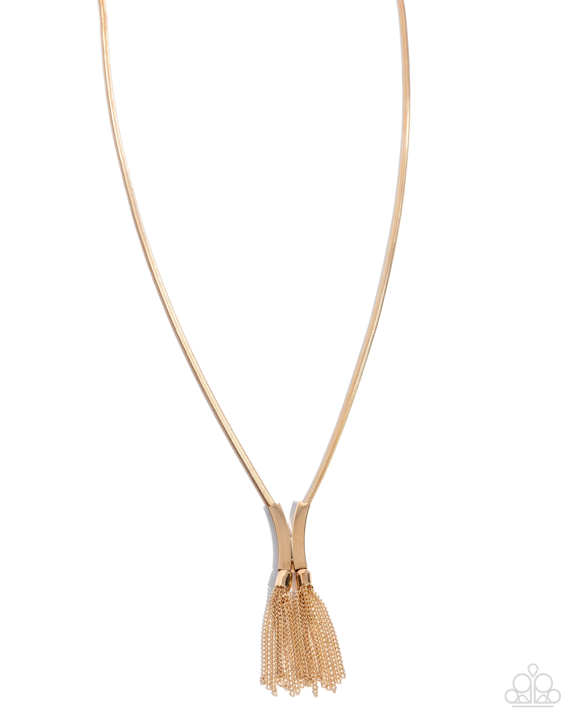 Melded together by curved gold fittings along a strand of extended gold snake chain, a duo of gold classic chain tassels swing from the bottom of the strands, creating an alluring fringe. Features an adjustable clasp closure.