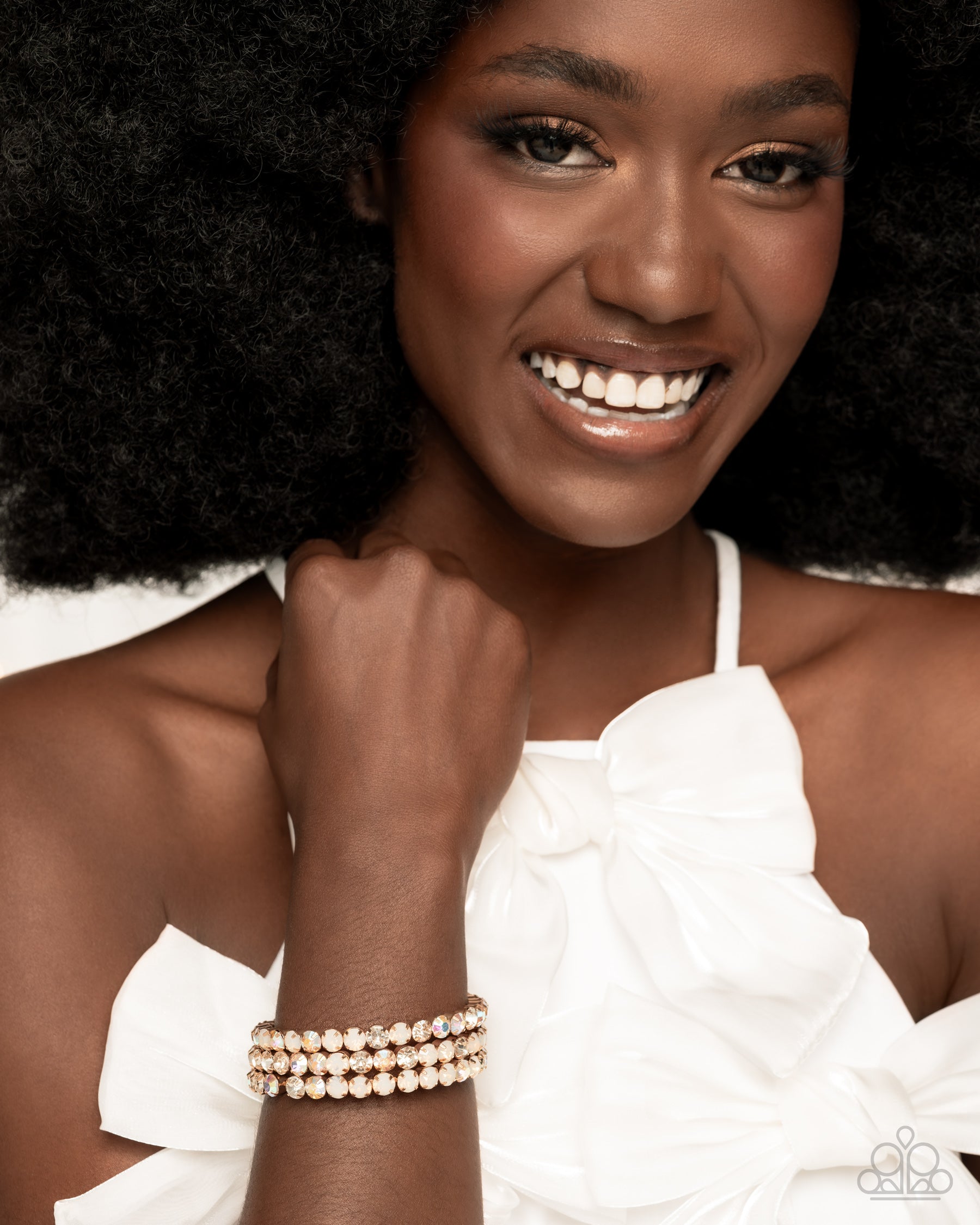 Iridescent Incantation - Gold & Iridescent Rhinestone Coil Bracelet - Paparazzi Accessories