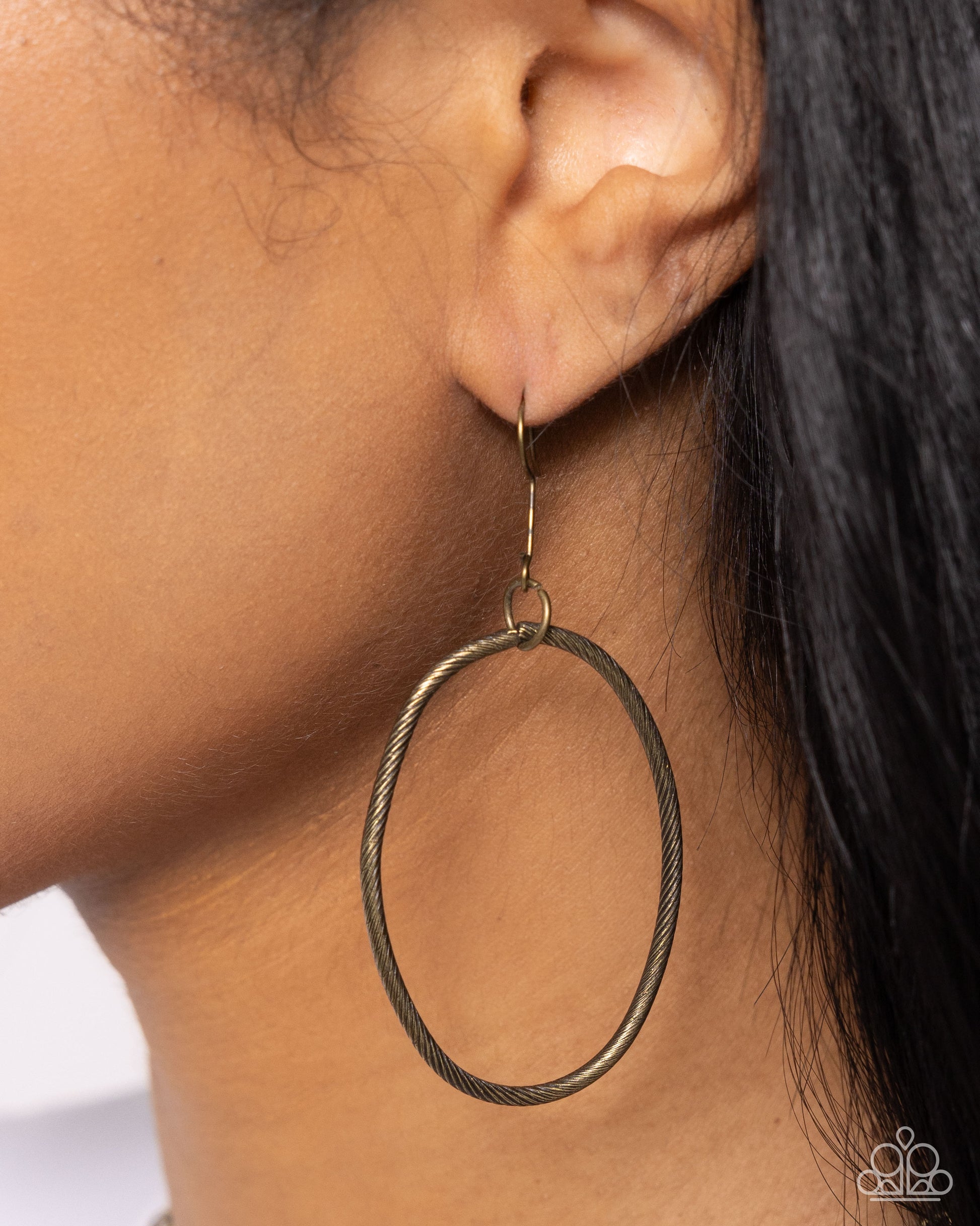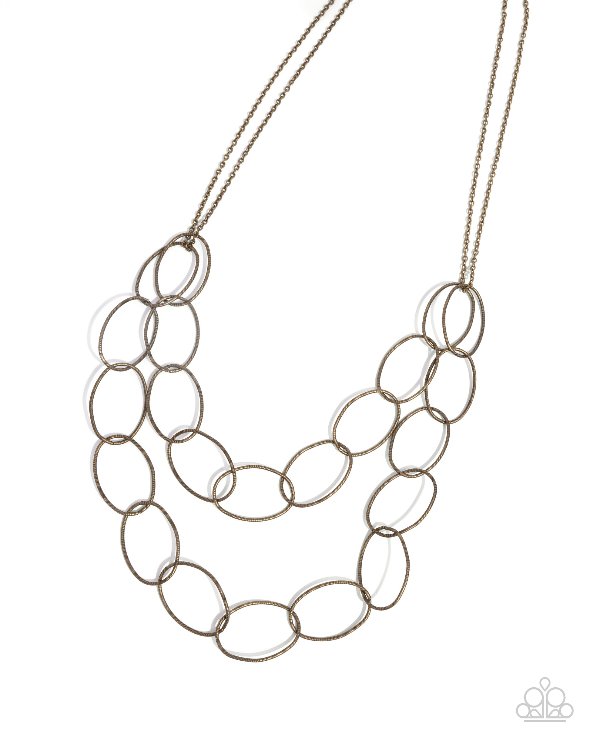 Etched in antiqued textures, pairs of oversized brass ovals link across the chest for a bold industrial look. Features an adjustable clasp closure.