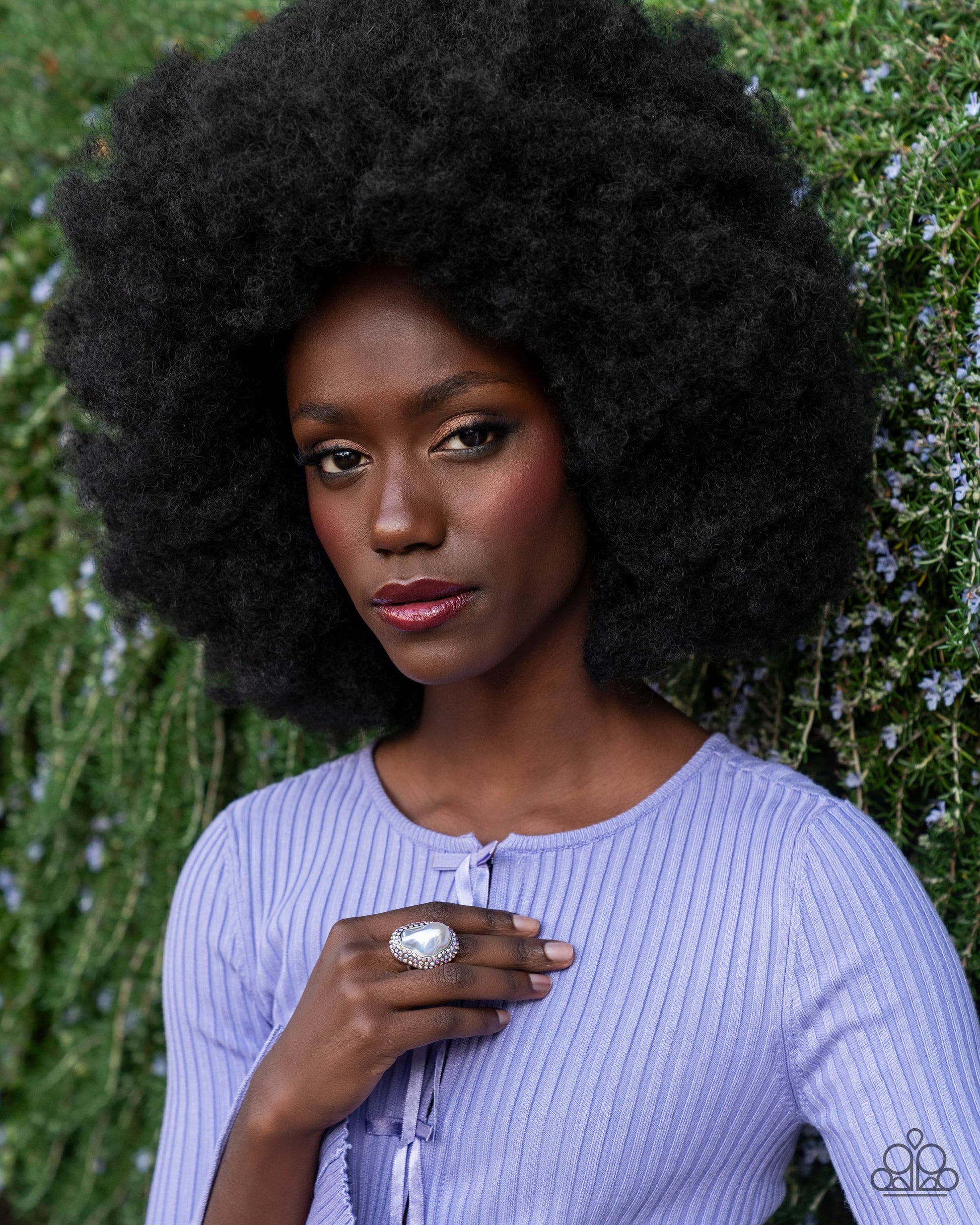 Opulent Ocean - White Iridescent Ring - Empower Me Pink Exclusive - Paparazzi Accessories