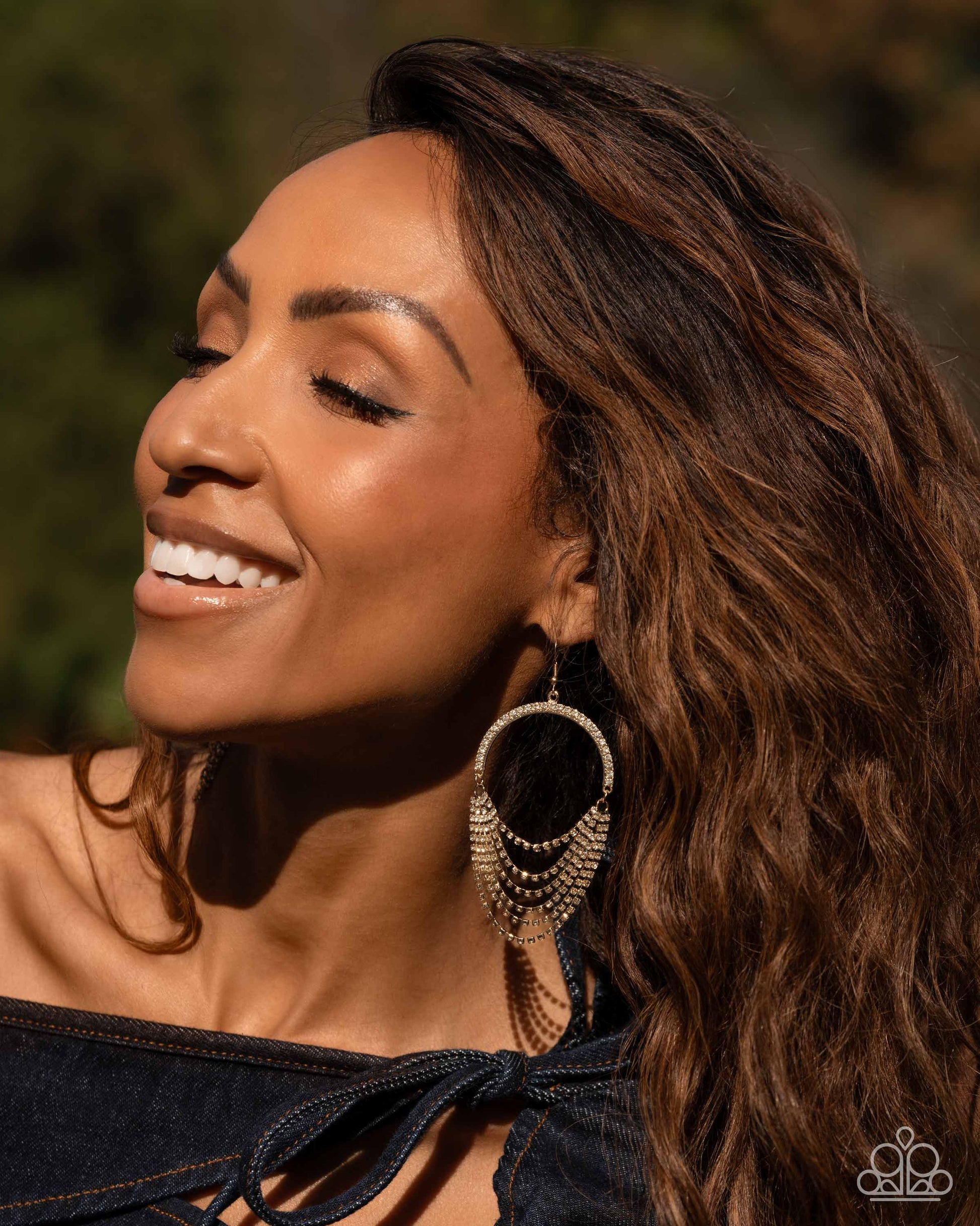 Ostentatious Opulence - Gold & White Rhinestone Strands Fishhook Earrings - Empower Me Pink Exclusive 2025 - Paparazzi Accessories