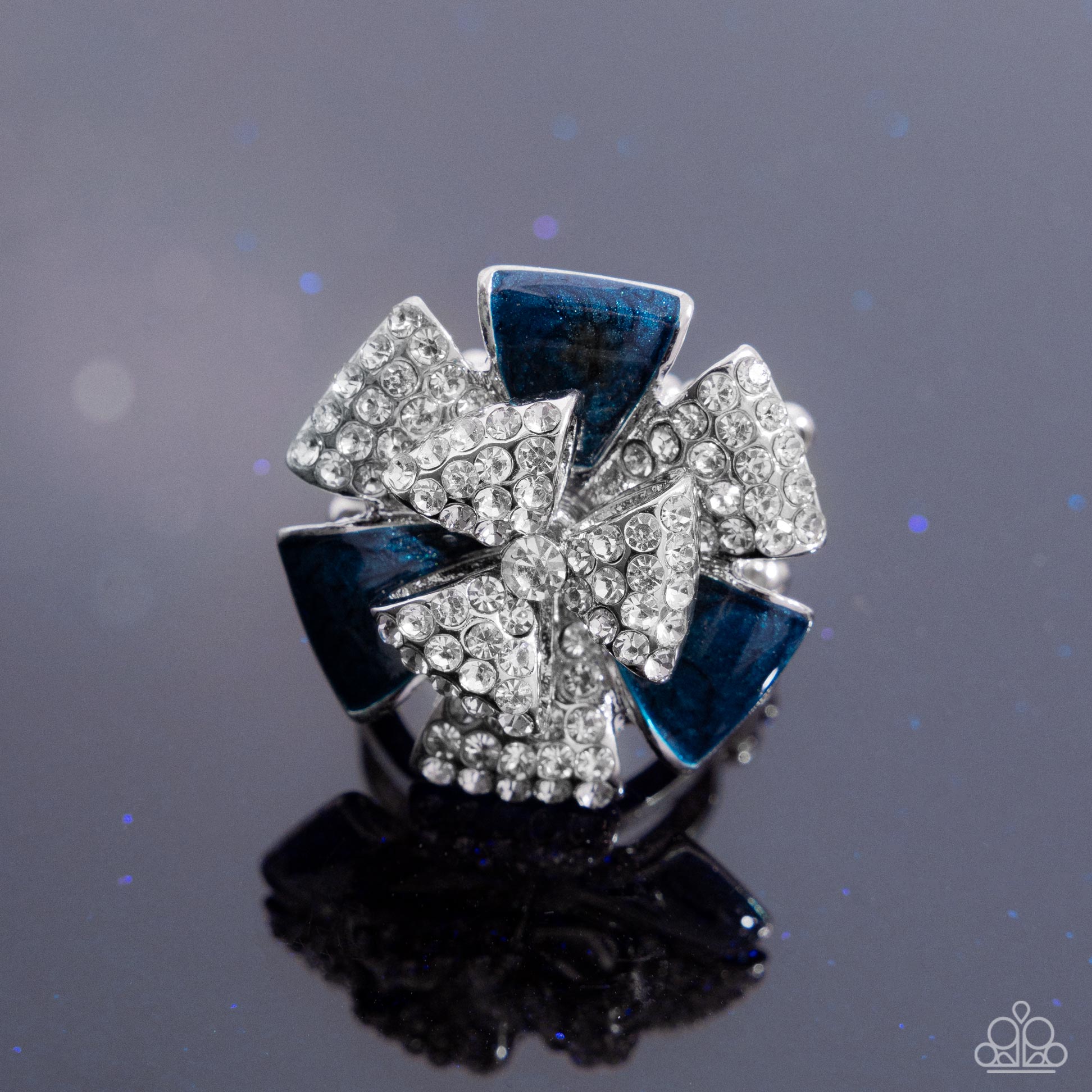 Persuasive Pizzazz - Blue Enamel Silver Ribbon-like Petals Ring - Paparazzi Accessories