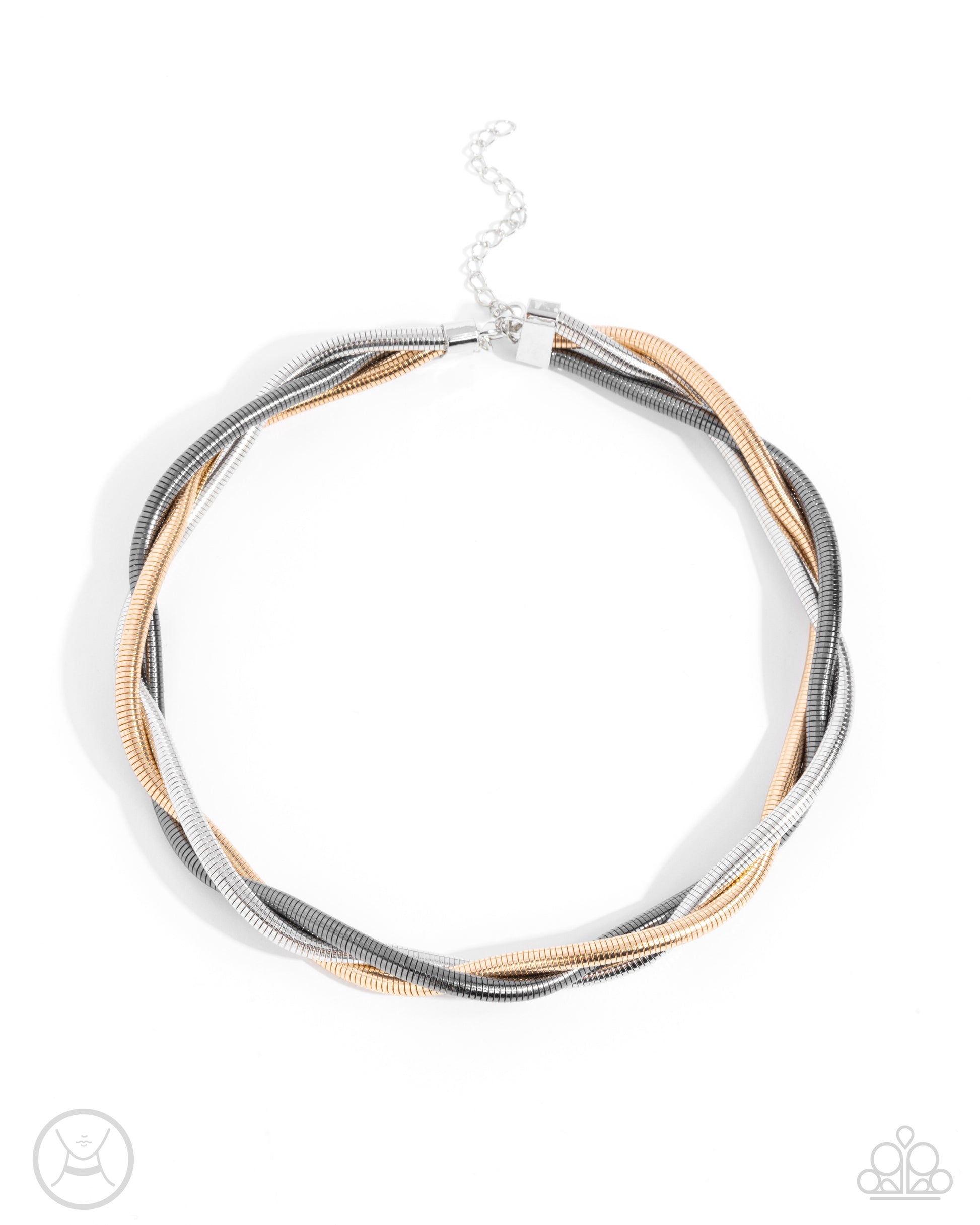 Sleek Splendor - Multi Silver Gold Gunmetal Braided Chain Necklace - Paparazzi Accessories
