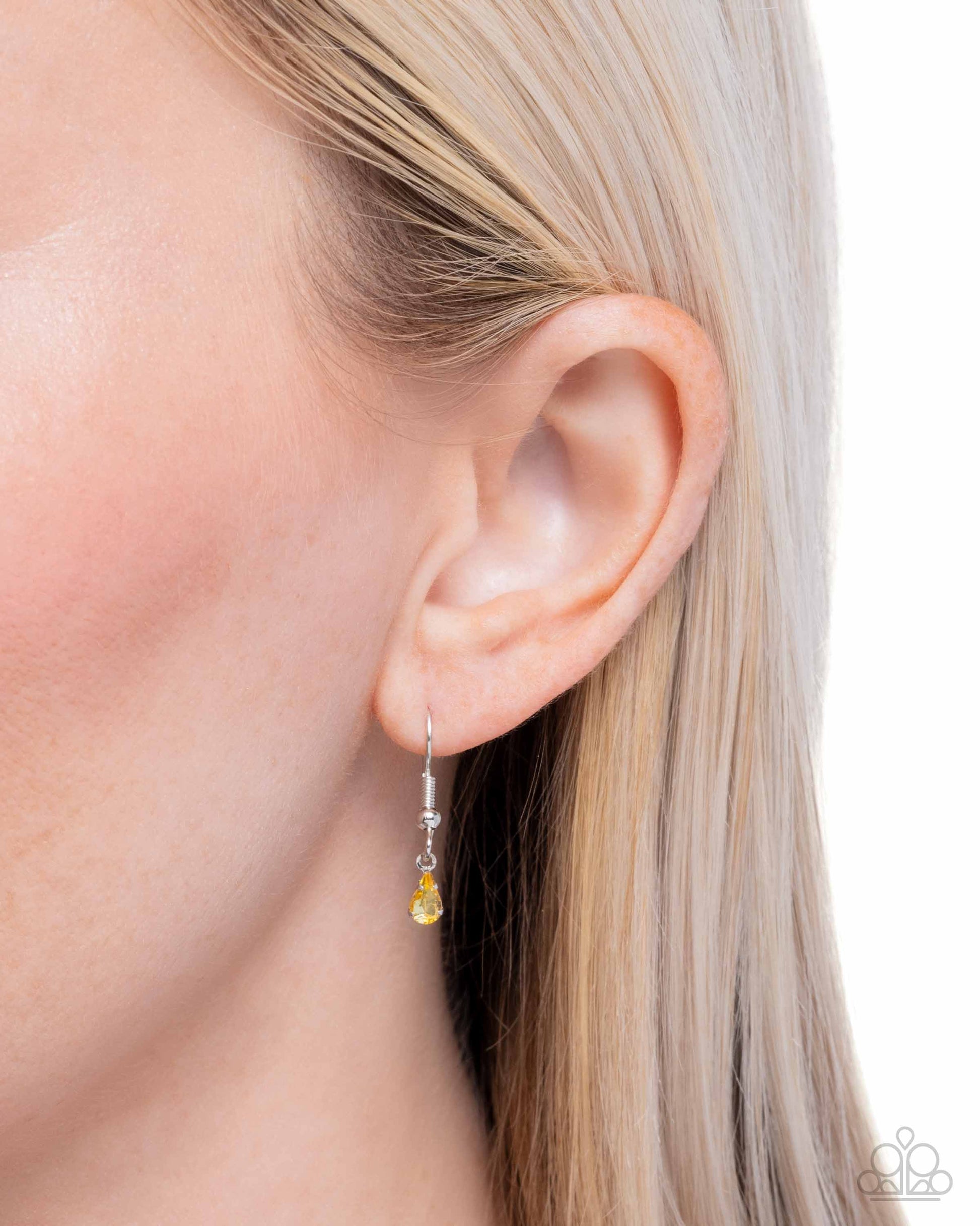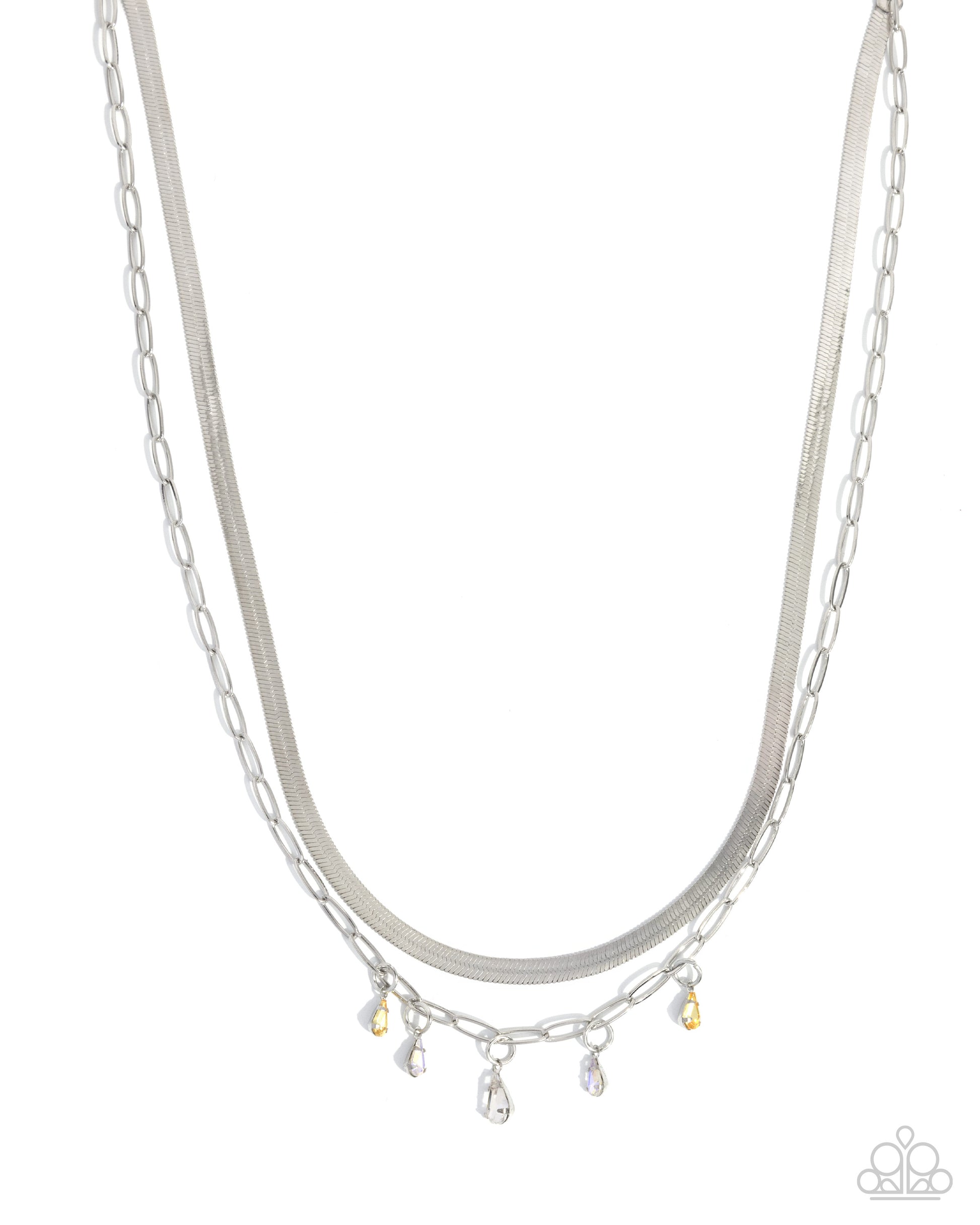 Suave Shimmy - Yellow and White Iridescent Rhinestone Necklace - Paparazzi Accessories
